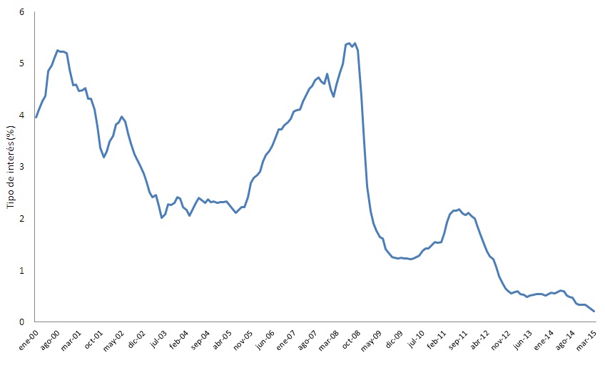 Su perfil se asemeja al de una etapa reina del Tour: un puerto inicial de baja categoría y su descenso (2000-2003), tramos de llaneo en cotas bajas (2%, 2003-2004), la prolongada subida de un puerto de primera, tras cuya coronación (Euribor de más del 5%, tras la subida de tipos por el BCE en el verano de 2008) se inicia un vertiginoso descenso (septiembre de 2008, quiebra de Lehman Brothers) que, interrumpido por un breve repecho (2010, cuando se creyó que la salida de la crisis tendría forma de V), concluye en un largo tramo a nivel del mar (Euribor casi al 0%, su nivel actual).